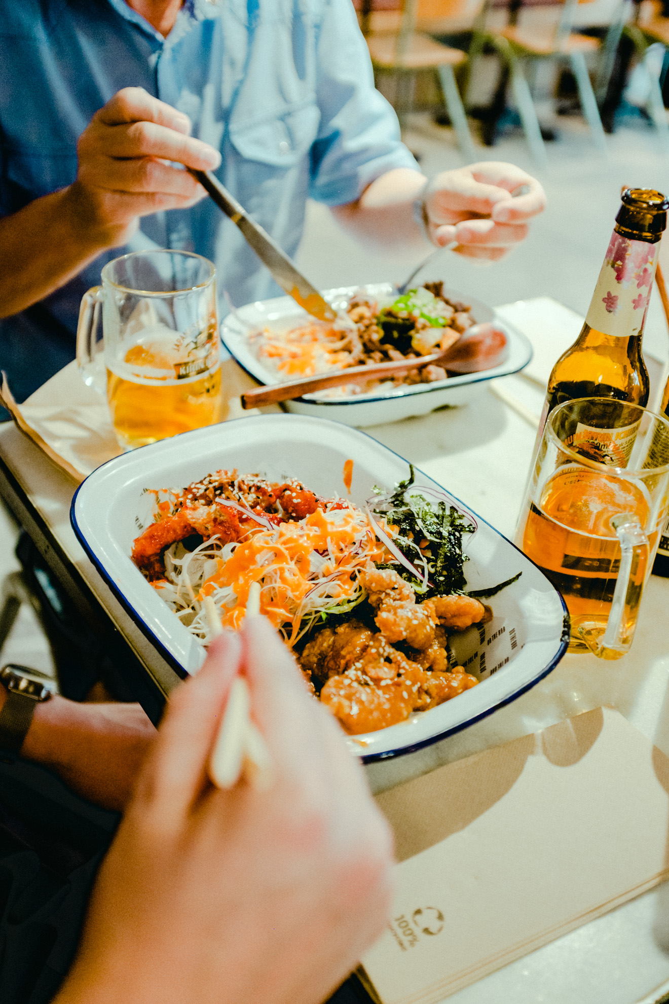 Efter en timmes bad och häng i solstolar gick vi över till Café Fluß och åt mat, drack öl och spelade spel.