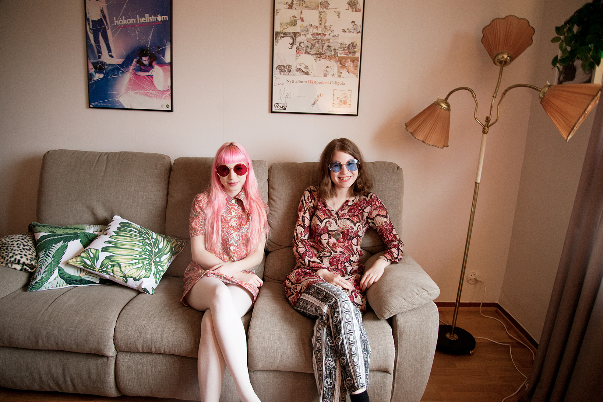 I lördags hade min faster 50-årsfest med Hippie/70-talstema. Hade en orange klänning från Iris Second hand, jeansjacka från H&M, solglasögon från Pop Boutique och Rosa höga Vagabondskor som ej syns på bild. Pappa hade köpt någon slags discodräkt och stylat med guldkedja, snabba solglasögon och mustasch. Orkar inte!! Här är i alla fall massa bilder från innan vi drog till festen. Vill typ ha de här kläderna på mig jämt.