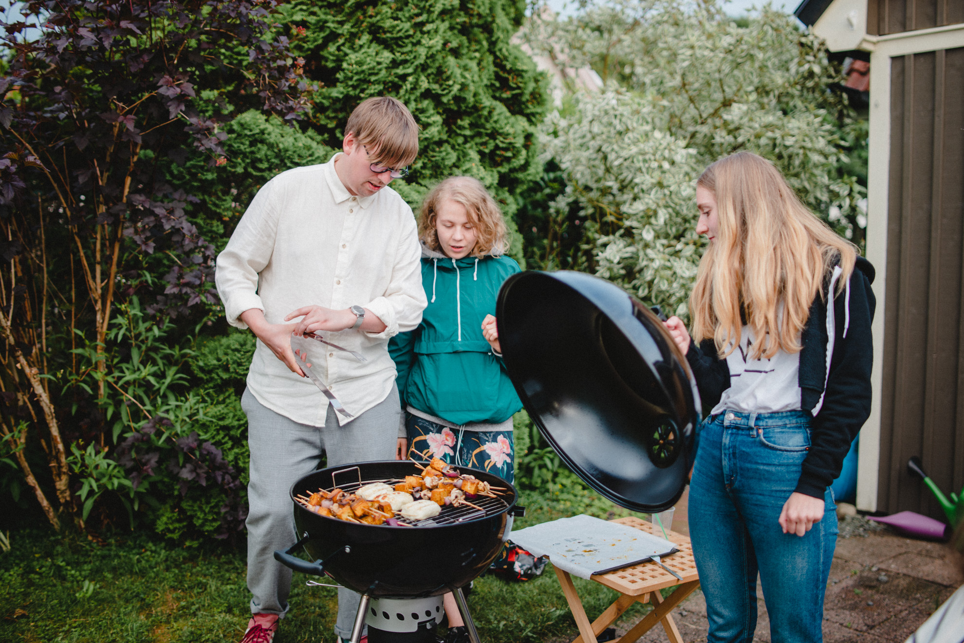 Hängde i trädgården med deras familjer och vänner och åt korvlunch.