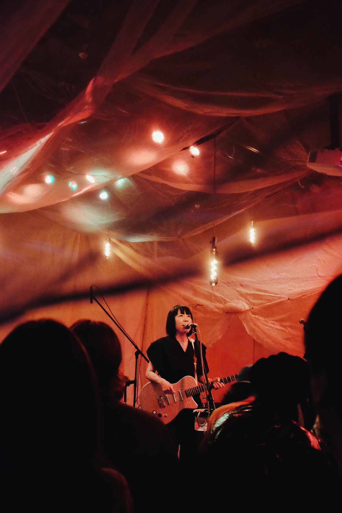 Min andra fredag i Nagoya satt jag och drack vin och åt empanada på Bateria. Några dagar tidigare hade jag sett en Instagram-post om att det skulle vara en spelning med bandet OOIOO på ett ställe i närheten. Jag hade aldrig hört dem tidigare, men jag lyssnade på deras musik för första gången på tunnelbanan till restaurangen och fick en känsla av att jag ville höra mer. Jag hade inte bestämt mig för om jag skulle gå, men strax innan spelningen skulle börja drack jag upp mitt glas vin och skyndade mig till lokalen Vio. Lyckades hamna helt fel och träffade på en man som pekade åt vilken riktning jag skulle gå för att ta hissen till lokalen, men istället tog jag fel hiss och hamnade i en källare. Genom väggarna hörde jag hur bandet spelade. En annan man som stod och diskade fick guida mig till rätt hiss och till slut hamnade jag rätt.
