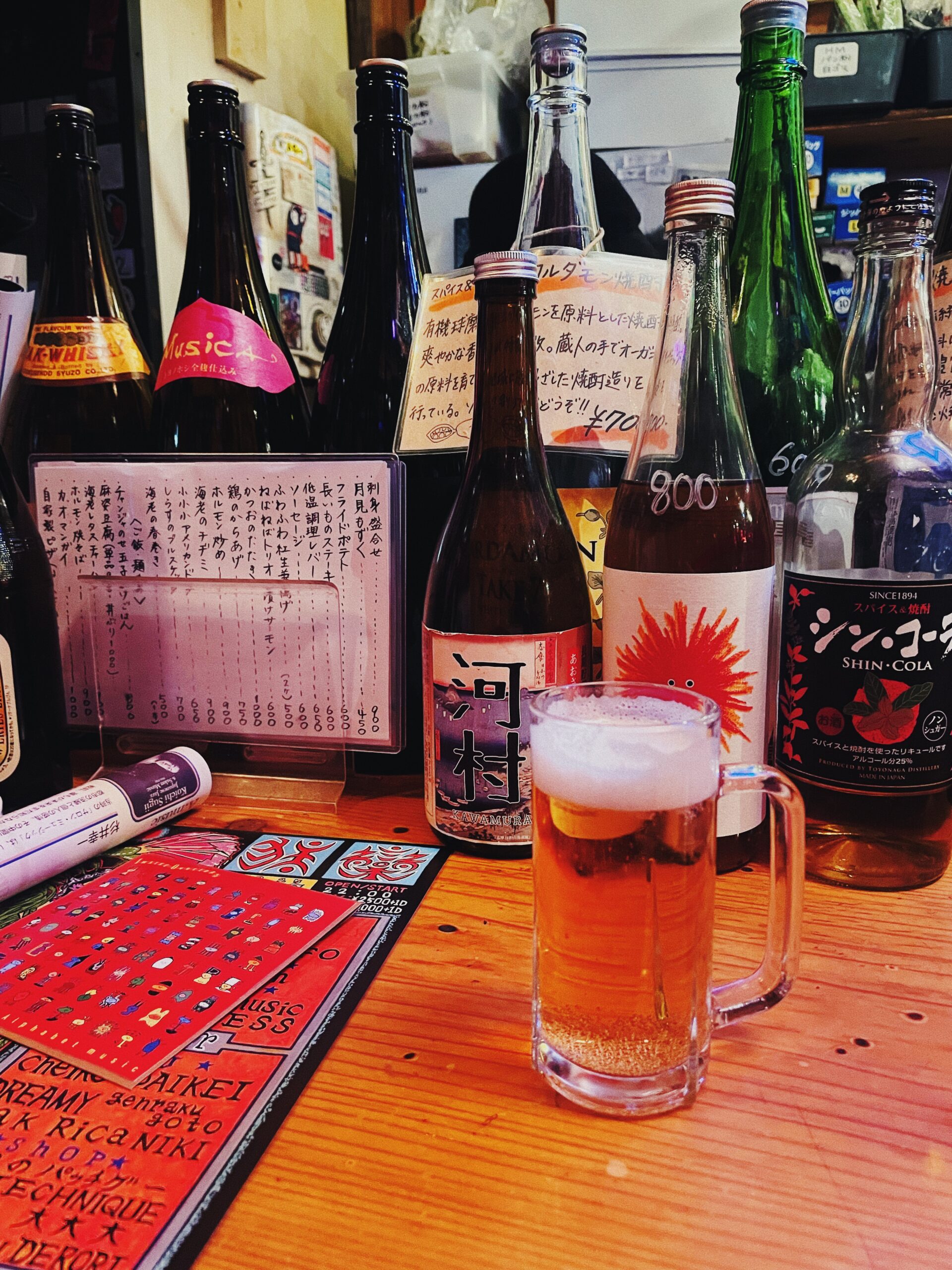 Dagen efter tar jag tunnelbanan till Chikusa station och promenerar till en modern izakaya som jag kollat upp, ZEZE – ett ställe jag kom tillbaka till många gånger. Den här första gången dricker jag öl och pratar om 90-talets futuristiska estetik och X-files med en av ägarna, Mai. Två tjejer sitter längre bort i baren och plötsligt ger de ifrån sig ett högt skrik. Mai och jag tittar förvånade på varandra medan tjejerna energiskt visar varandra bilder på sina ex som de båda nyligen dumpat och som ser anmärkningsvärt lika ut. De upptäcker också att de själva delar samma födelsedag. “Det här är definitivt ett fall för The X-Files”, säger jag.