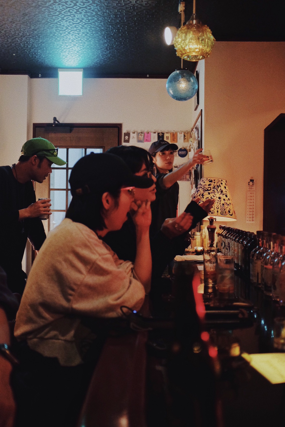 I entrén ingick en drinkbiljett som jag glömde bort när jag köpte en öl. Hittade den senare i fickan och stod därför kvar och drack en till öl efter konserten vid ett litet bord. En kille som står och dansar längre bort kommer fram och säger något på japanska som jag inte förstår och inser då att det är en person som äger en vinylbar i Nagoya som jag några dagar tidigare börjat följa på Instagram. Han introducerar mig för sin vän som hela tiden har stått bredvid mig vid det lilla bordet. Det är Yuzuru. Vi pratar om vårt fotograferande, men ljudet är så högt att vi knappt hör varandra. Han följer mig till tunnelbanan och vi pratar om att vi borde besöka hans väns vinylbar Can Buy Records.
