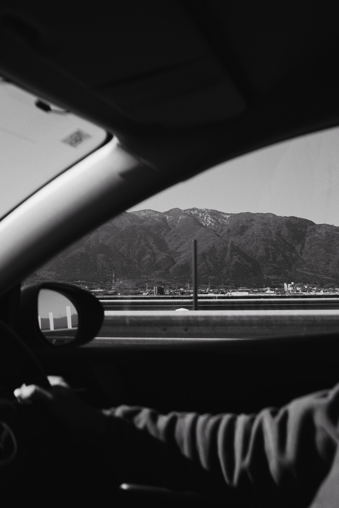 Hur jag försökte fotografera bergen genom bilrutan på väg till Yoro.
